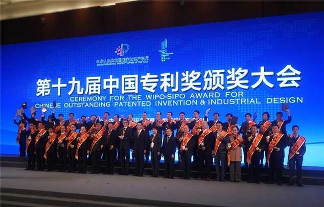 12月13日,由国家知识产权局和世界知识产权组织共同主办的第十九届中国专利奖颁奖大会在北京举行。本届中国专利奖共评选出中国专利金奖20项、中国外观设计金奖5项、中国专利优秀奖802项、中国外观设计优秀奖68项。据不完全统计,25项专利金奖相关产品或工程项目从实施之日起到2016年年底,新增销售额939亿元,新增利润96亿元,新增出口244亿元。